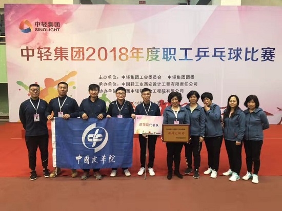 2018年11月1日至2日,中轻集团2018年度职工乒乓球比赛在西安举办。皮革院由纪委书记孙丽萍带队,与来自集团公司的其余11支代表队参赛。经过为期两天紧张激烈的多轮较量,皮革院代表队终因实力差距未能取得好名次,但是队员们面对强手毫不畏惧,奋勇拼搏,充分展现出良好的比赛精神风貌,赢得了对手的尊重和赞赏,并获得大赛精神文明奖。