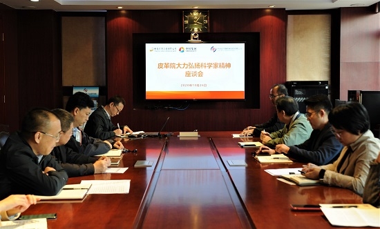 10月26日下午,中国皮革制鞋院党委召开大力弘扬科学家精神座谈会。党委副书记、执行董事、总经理段力民总结发言,皮革院党委班子成员,科研业务部门负责人、骨干员工代表共15人参会,会议由纪委书记冯军建主持。