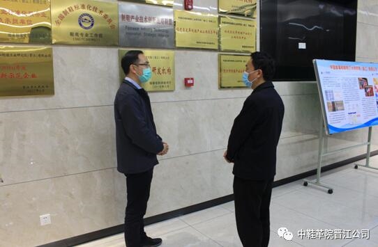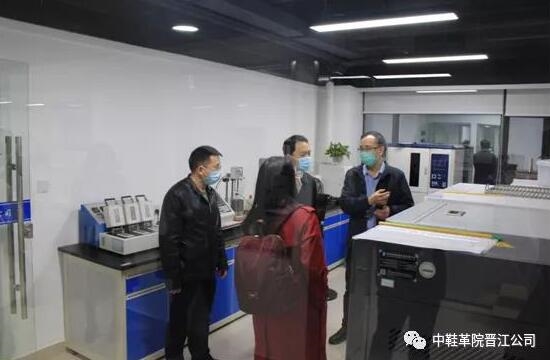 中鞋革晋江院院长王文琪接待调研组一行参观了中鞋革晋江院的服务中心、标准检测中心及研究开发中心,并从业务板块、服务方向、取得成果等方面介绍了中鞋革晋江院的相关运行情况。