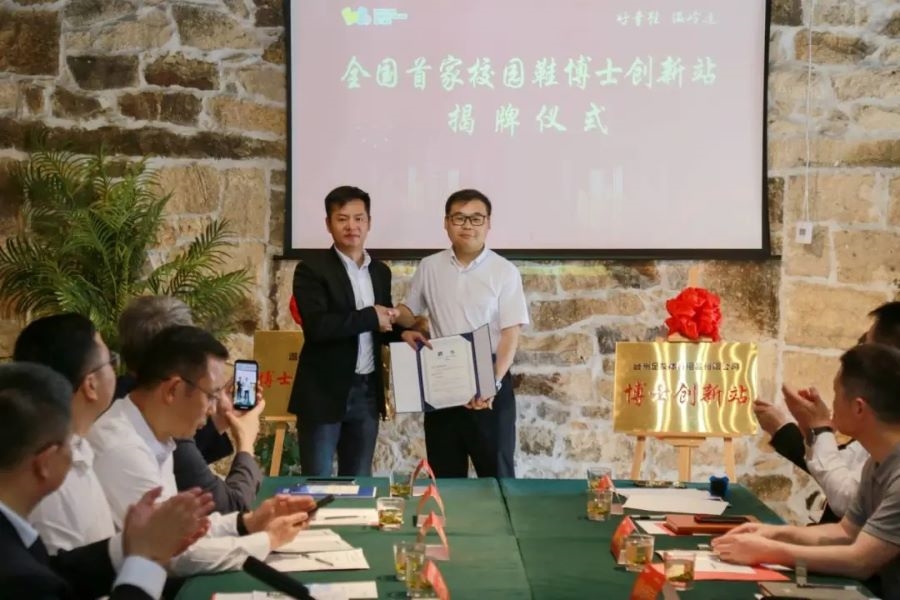 在会上,桑军博士作为“校园鞋博士创新站”的负责人,接受台州足友体育用品有限公司总经理蔡建跃颁发的创新站聘书。“校园鞋博士创新站”设立在台州足友体育用品有限公司,将在城北街道原有的鞋业检测中心基础上迭代升级,设立博士创新实验室,为校园鞋的标准制定、鞋辅材料提供研发技术支撑,提升鞋业制造的整体水平,逐步带动温岭鞋业产业规范化、品质化、品牌化发展。