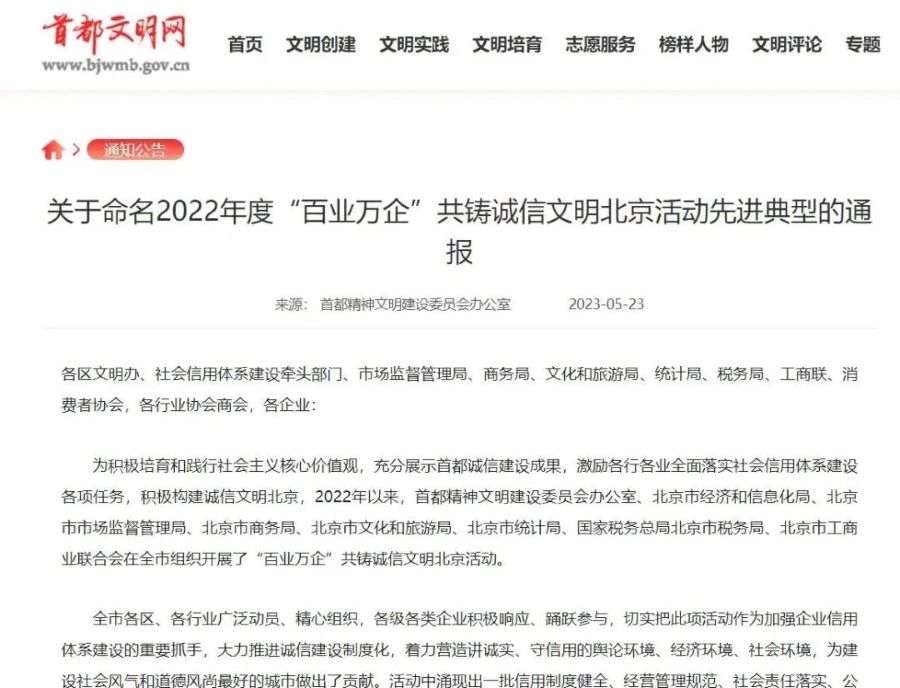 “百业万企”共铸诚信文明北京活动以积极培育和践行社会主义核心价值观,充分展示首都诚信建设成果,积极构建诚信文明北京为目的。为全市范围内信用制度健全、经营管理规范、社会责任优良、在全市具有示范作用的先进典型授予荣誉,以激励更多企业诚信经营,从而推动社会信用体系建设高质量发展。