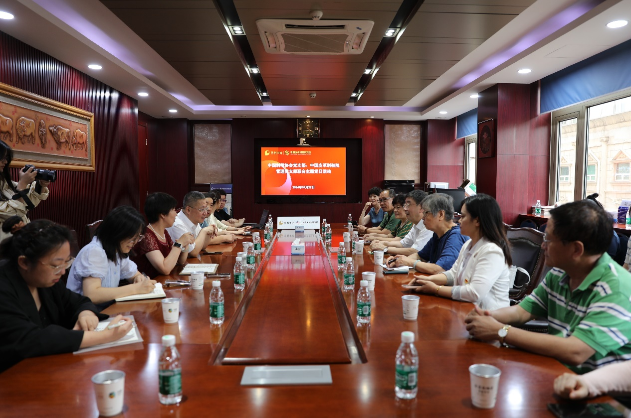 为深入学习贯彻党的二十大和二十届三中全会精神,加强行业企业党建联建,促进党建与业务深度融合,7月29日,中国制笔协会理事长杨承杰一行到访中国皮革制鞋研究院开展支部联建活动。中国皮革制鞋研究院党委书记、总经理段力民,副总经理刘为,纪委书记孟越秋参加活动。