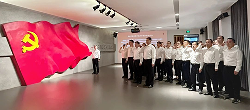 活动最后,全体党员面向党旗庄严宣誓,重温入党誓词。