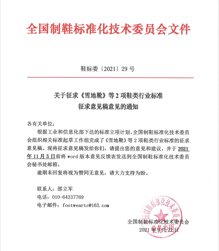 关于征求《雪地靴》等2项鞋类行业标准征求意见的通知