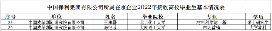 根据中国保利集团有限公司、中国轻工集团有限公司相关政策,现对我公司今年招聘的高校毕业生信息情况公示如下: