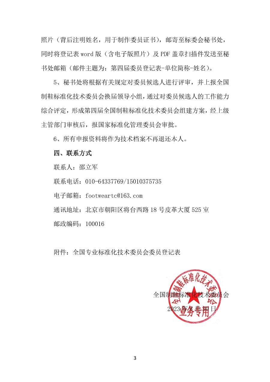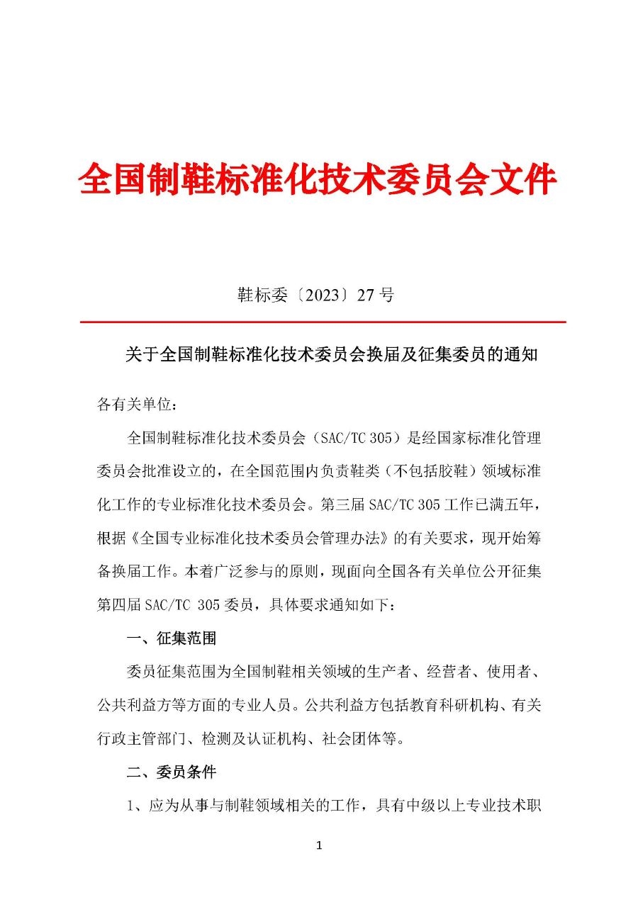 关于全国制鞋标准化技术委员会换届及征集委员的通知