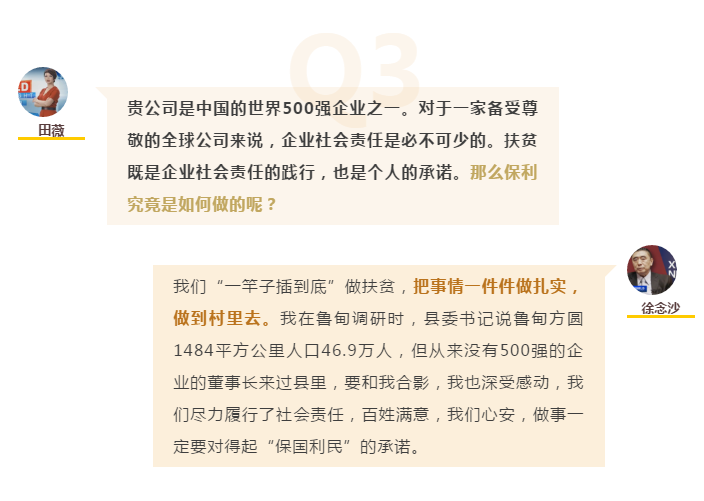 两会期间,全国政协委员,中国保利集团有限公司党委书记、董事长徐念沙接受中央广播电视总台CGTN World Insight节目专访,讲述保利脱贫攻坚责任举措。
